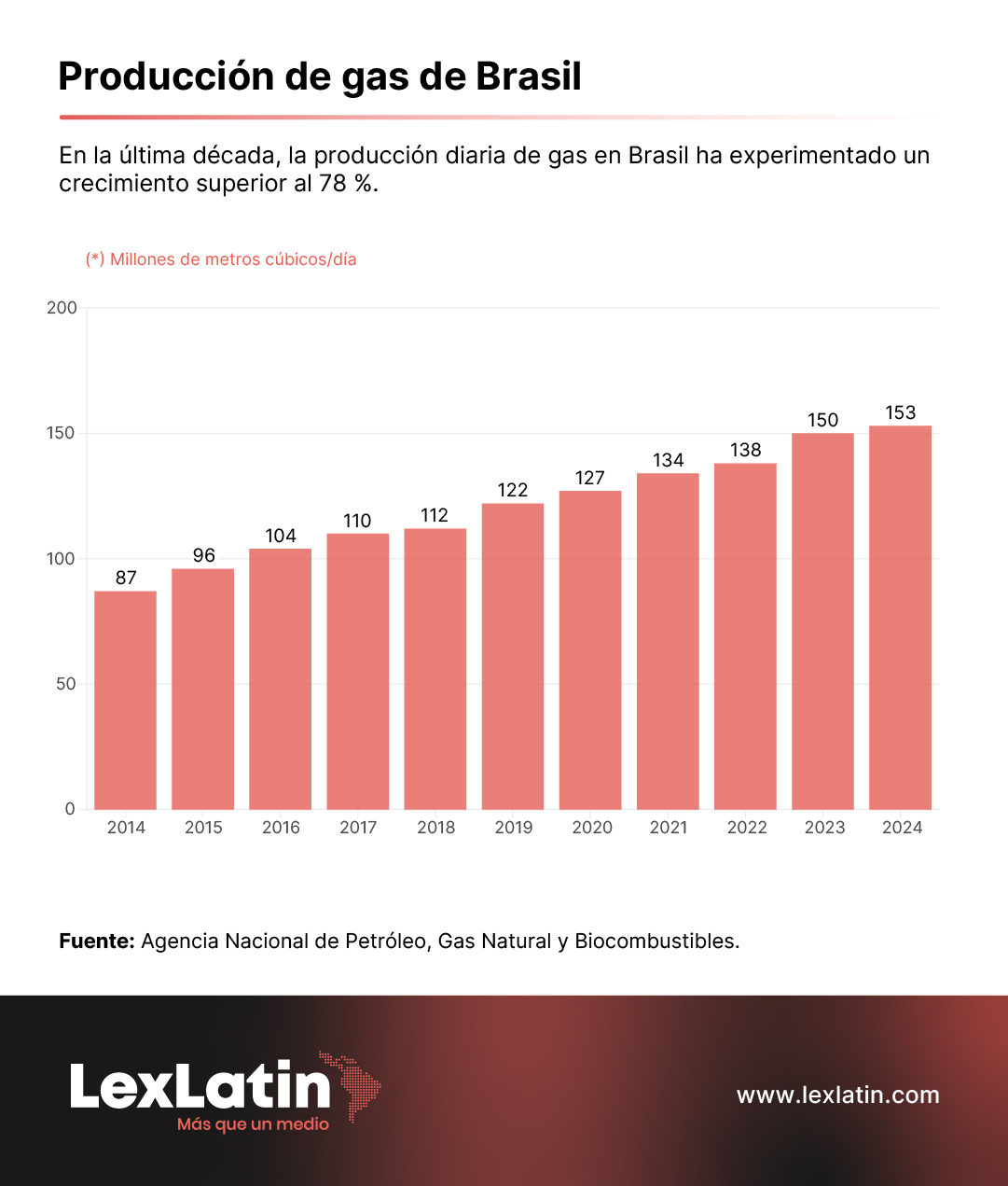 La estatal también señala que la producción de gas natural alcanzó en 2024 un promedio anual de 153 millones de metros cúbicos al día (Mm3/d), 2 % más que los 150 Mm3/d extraídos en 2023, mientras que las previsiones para este año rondan en torno a los 187 Mm3/d de gas natural, lo que supone un alza de 22 %.